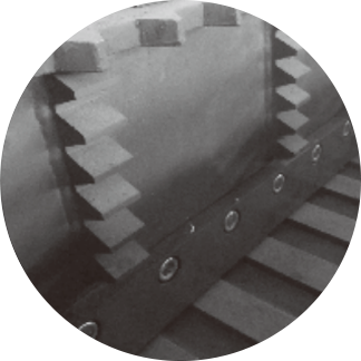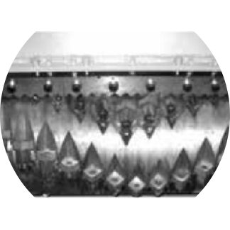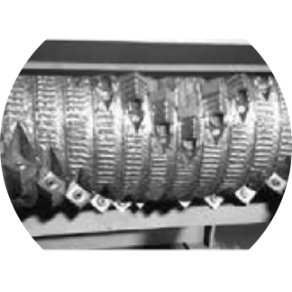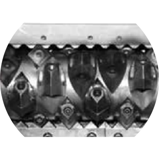此刀辊是针对ABS.PC.尼龙等坚硬材料进行特殊设计。刀具沉入较深,单次切料较少,减少冲击,同时降低噪音。